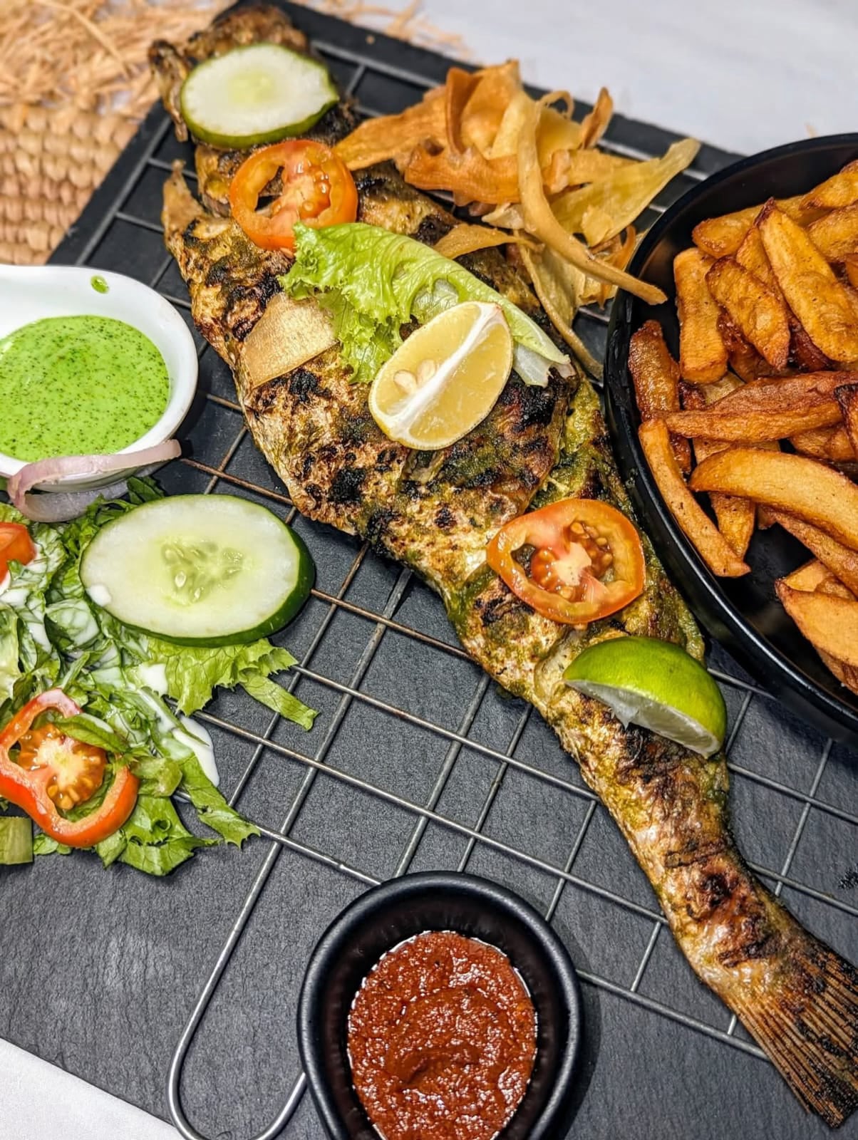 Afro-fusions and natural flavors, that’s what comes out of our kitchens! Creativity, fresh products, and homemade dishes are our specialty. Another specialty: our ingredients are locally sourced whenever possible! We are committed to contributing to the local economy. Our bar mainly features local drinks: for those who love discoveries, hibiscus wine, citrus liqueur, it’s up to you!During the week, the atmosphere is calm and cozy, perfect for relaxing at the end of the day. Wednesdays are reserved for acoustic live performances, Fridays for musical blind tests. In any case, every day is an opportunity to satisfy your culinary curiosity. And on Sundays, we forget the menu: it’s all-you-can-eat barbecue!